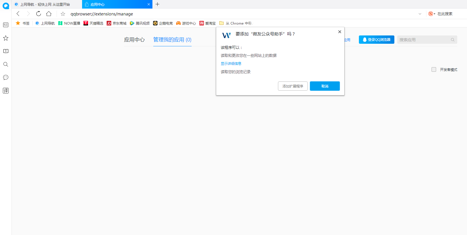 - 複制qqbrowser://extensions/man報站age,并粘貼到地址欄,按回 車鍵進(jìn)身路入擴展中心頁面(miàn)。