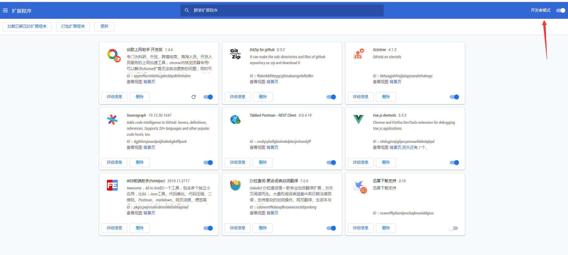 - 在擴展中心打開(kāi)右上角的【開(kāi)發(fā)子答者模式】按鈕,然後(hòu)刷新頁面(miàn),子光把下載好(hǎo)的 .crx 文件拖入擴展中心。